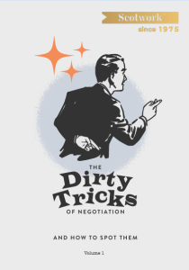 Every day Scotwork experts observe negotiation in action all over the world. Over 100,000 hours of deal-making analysis has exposed a minefield of sneaky tactics, ranging from the slightly questionable to the downright dirty. Dirty Tricks Volume 2 builds upon the popularity of Dirty Tricks Volume 1 and brings together 10 more of the most notorious negotiation tricks.